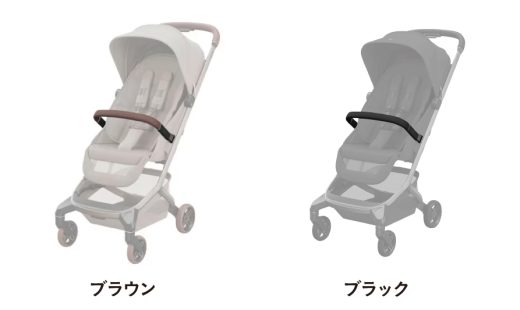 ハンドルと同じヴィーガンレザー調素材を使用し、簡単に取り付けでき、ベビーカーと一緒に折り畳めます。