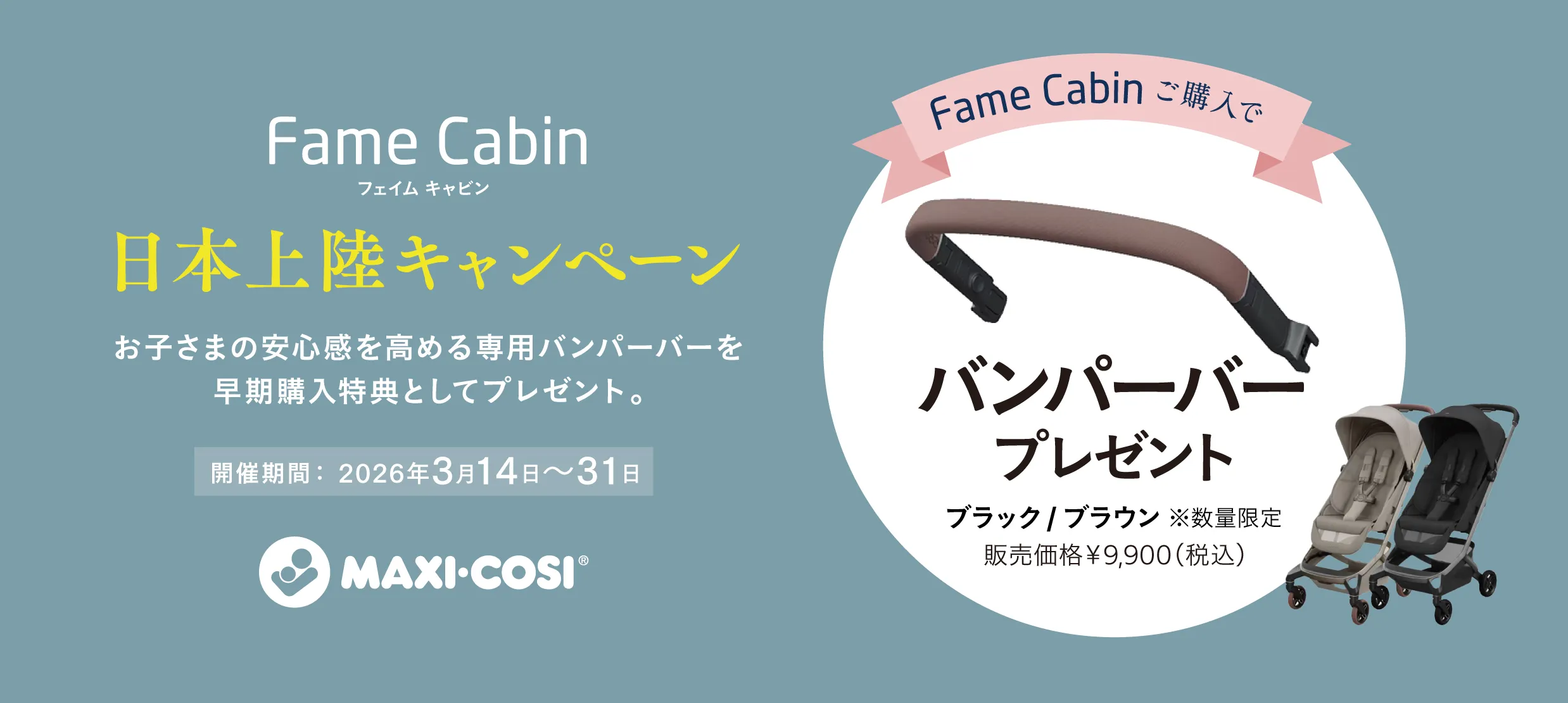 マキシコシから、コンパクトでありながら、快適な走行性と上質なディテールを備えた次世代プレミアムベビーカー「FAME CABIN」が日本に初上陸しました。