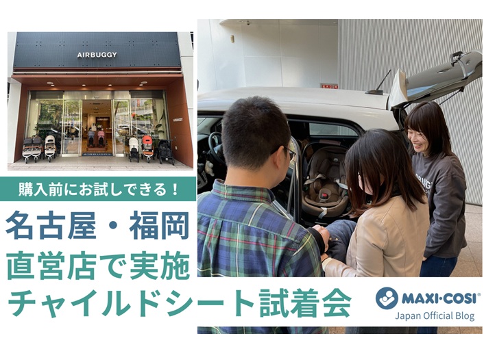 - 【名古屋・福岡】マキシコシ直営2店舗で毎月開催!チャイルドシート試着会のご予約方法